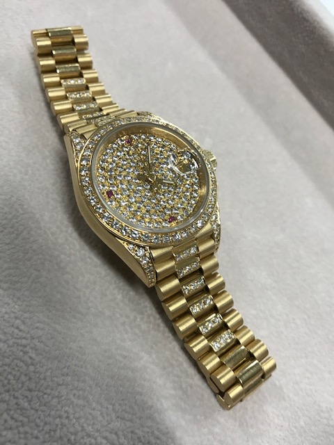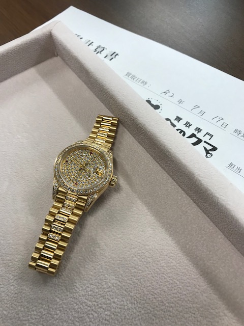 金無垢 の時計 買取になります。文字盤にはダイヤが散りばめられており、