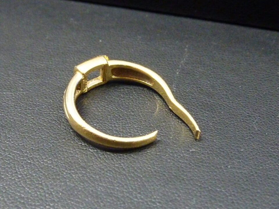このようなジュエリーは基本的に肉眼で見てもわかるくらいくっきりと『K18』や『ブランドのホールマーク』など刻印がありますが