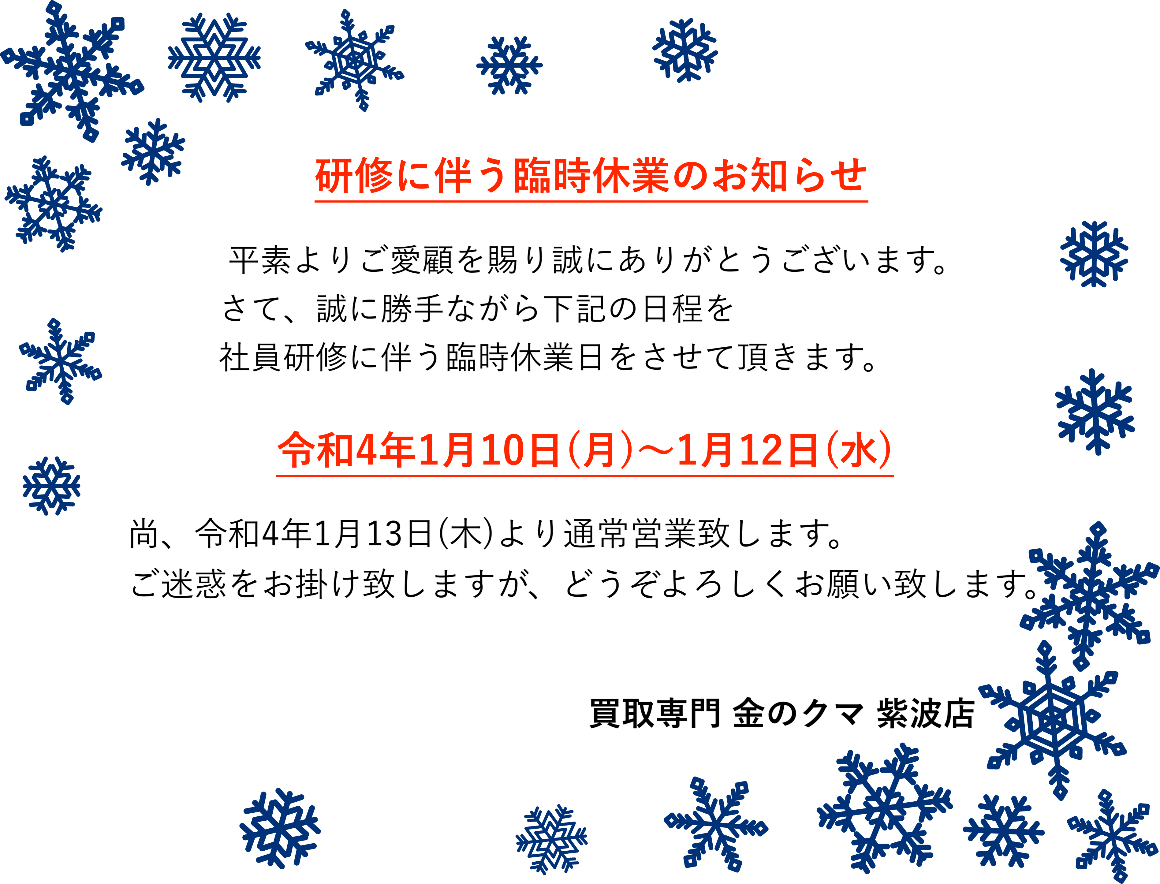 【紫波店 研修に伴う臨時休業のお知らせ】