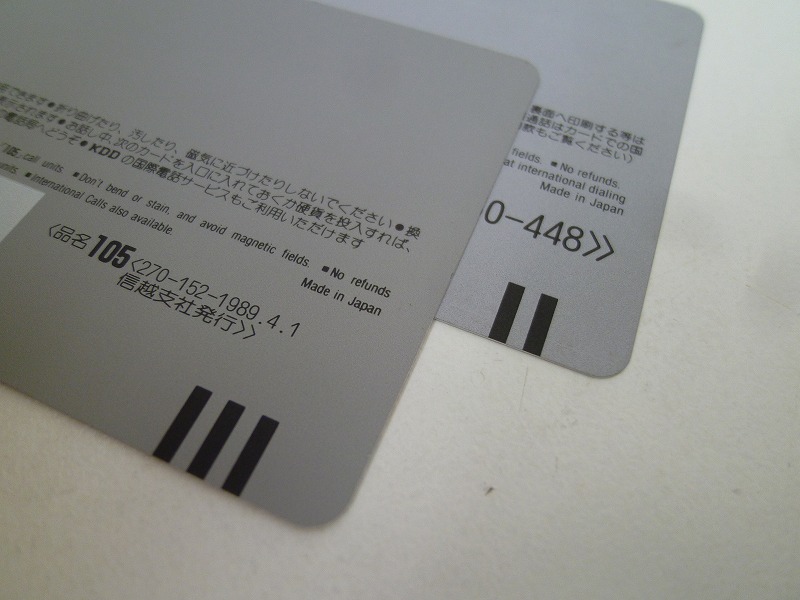 テレホンカードの裏側にある黒い線は、2本だと50度数で、3本だと105度数になります。
