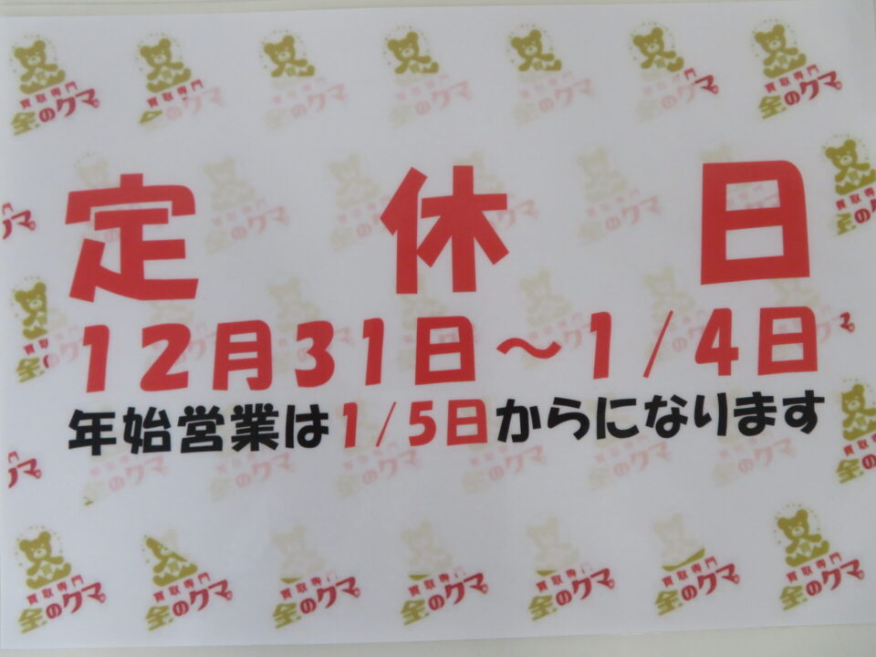 金のクマ札幌店 本年最後の営業日。。。 19時までやってます🎵
