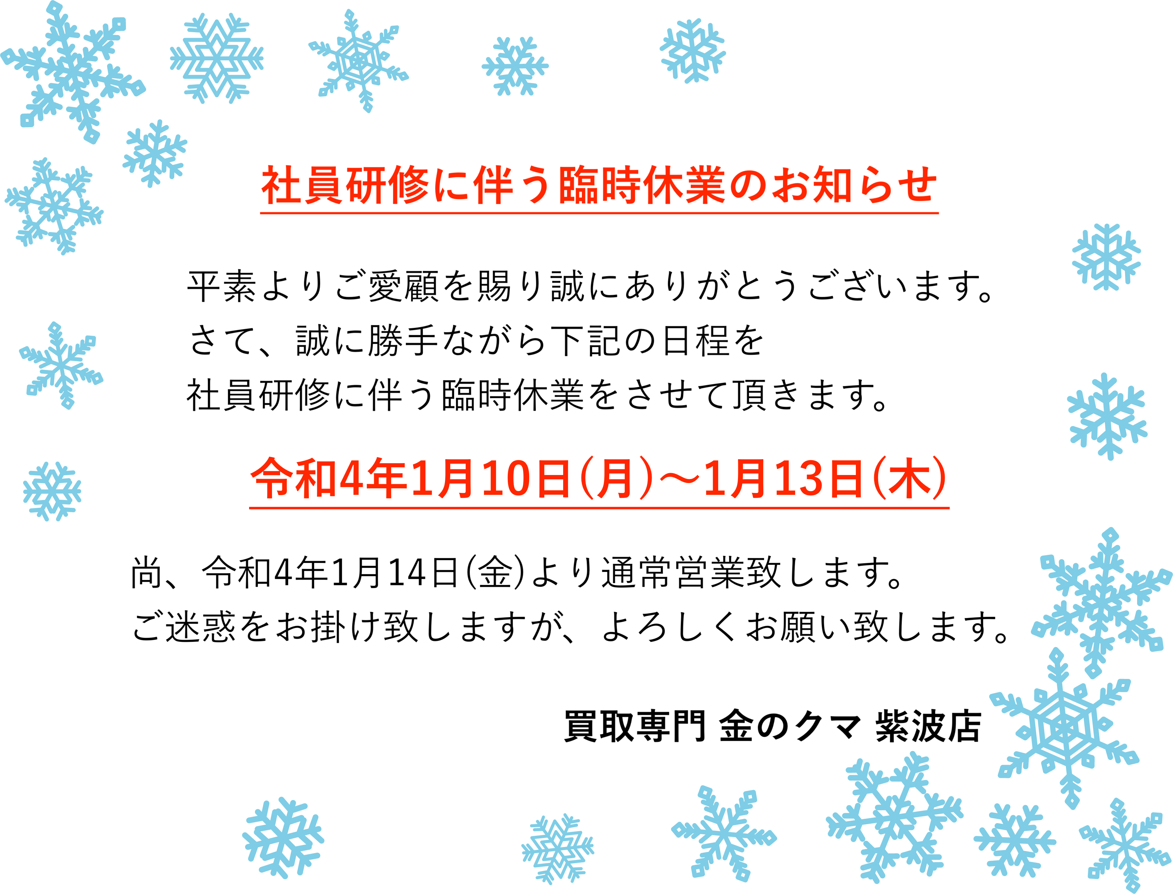 【紫波店 研修に伴う臨時休業のお知らせ】