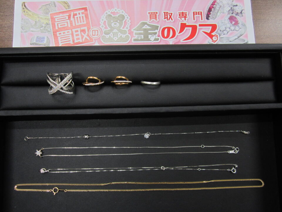 金やプラチナ、ダイヤモンドなど 貴金属の アクセサリーを多数お持ちいただきました!