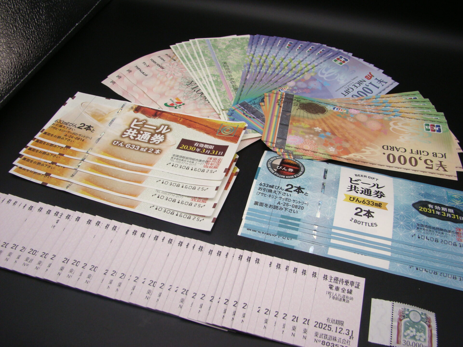 本日は 金券 ビール券 株主優待券 収入印紙 です。