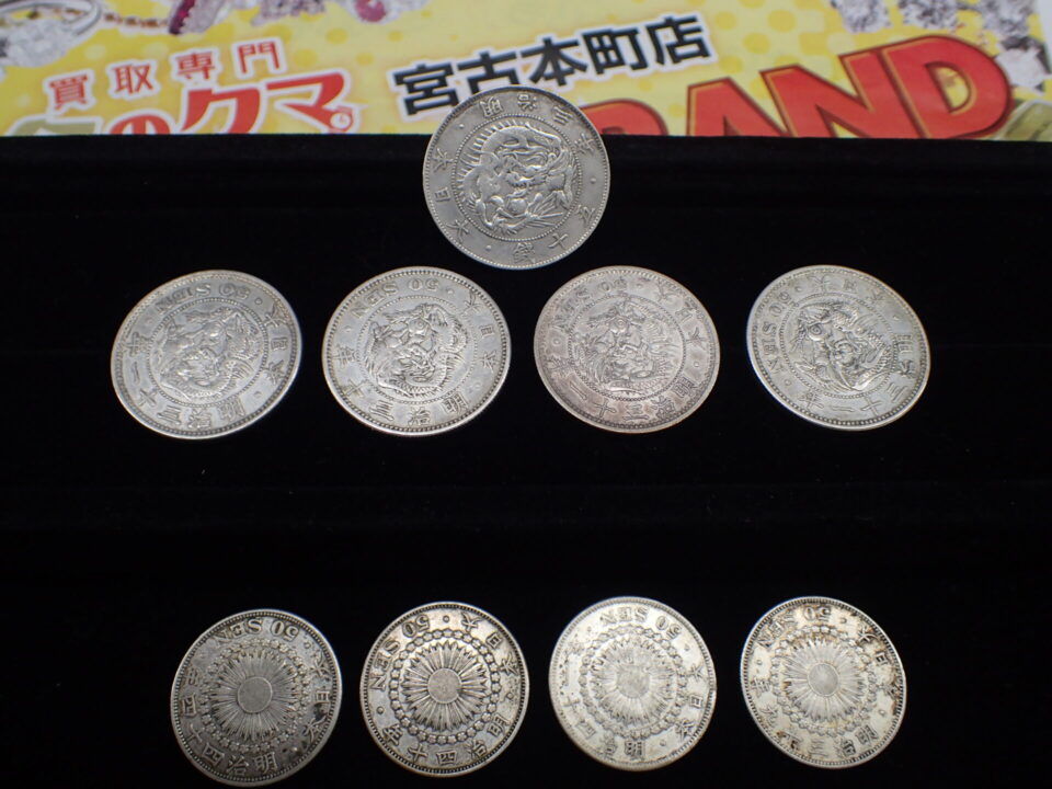 銀貨 明治三年 旭日竜大型 五十銭 など複数枚を お持ちいただきました✨