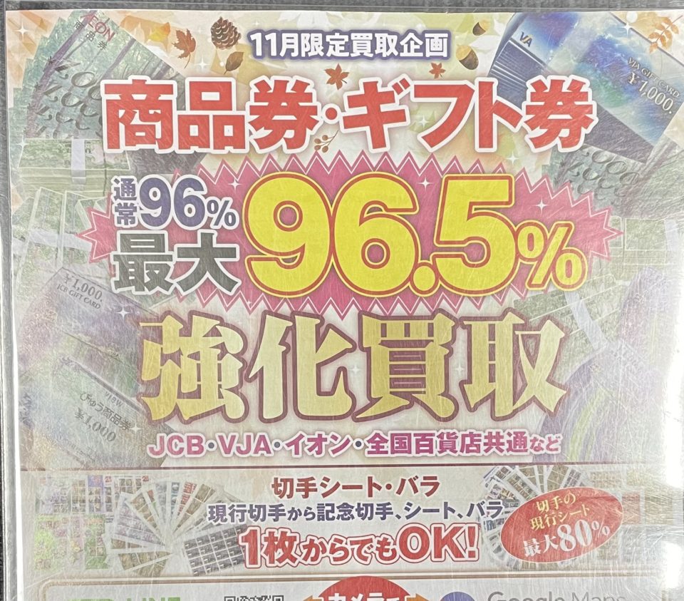 11月は金券・ギフト券を強化買取!!